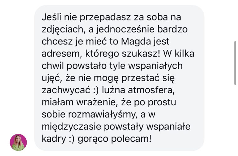 Wiem, że to bywa trudne. Ale kiedy widzę na sesjach i warsztatach, jak kobiety, które już dawno zapomniały o swoich marzeniach, stawiają w końcu na siebie, wiem, że profesjonalne zdjęcia to dopiero początek zmian.